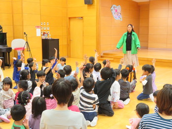 開催10日前に ”あすかお姉さん”と大会キャラクターである”かみじろう”が やってきてくれ 大喜びの子どもたち。