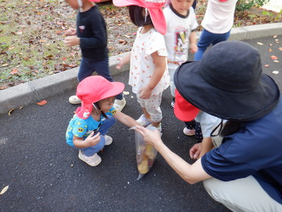 園に戻ると 赤や黄色の葉っぱが舞う光景に 「きれい~」と手に取ってみたり集めたり・・・