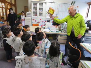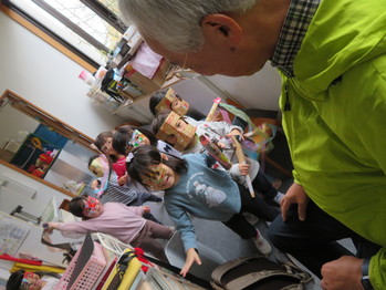 園長先生のお腹からでてきたおやつに びっくりしながら ご機嫌で帰っていく子どもたちでした。