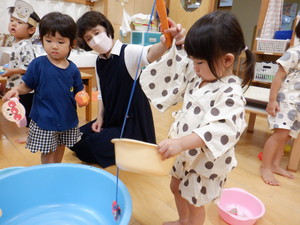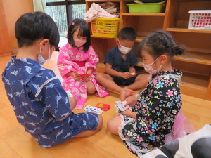 今日は 待ちに待った たなばたまつり ず~っと楽しみにしていただけに まつり という響きが一層 心をワクワクさせ 朝からウキウキ気分の子どもたちです