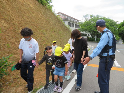 第3駐車場から園までの歩き方も練習しました。白線の内側をおうちの人と一緒に歩きましょう。